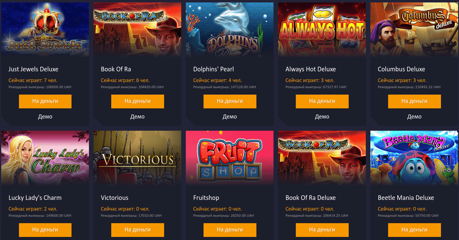 Процент отдачи для игровых автоматов на сайте стартует от 95%. Волатильность слотов разная, от низкой до высокой, а диапазон ставок позволяет играть в Monoslot на гривны в игровые автоматы даже гостям с небольшим бюджетом.