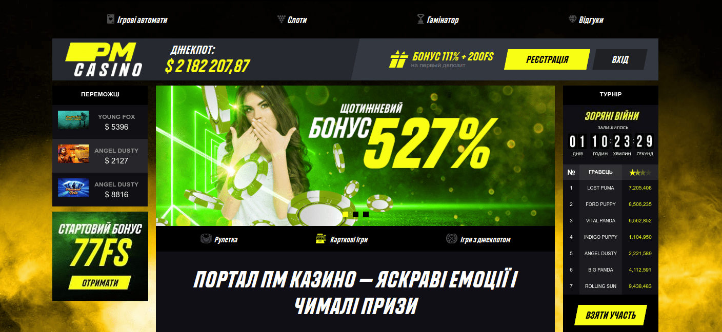 За годы своего существования, PM Casino завоевало преданную аудиторию азартных игроков и множество положительных отзывов от специалистов в сфере азартных игр. Заведение предлагает своим клиентам обширную игровую библиотеку от мировых лидеров в сфере разработки игровых автоматов. Пм казино гарантирует честную игру на прозрачных условиях, регулярное проведение турниров с щедрыми наградами и предоставляет множество уникальных игровых услуг. Площадка активно развивается в азартном сегменте Украины, поэтому валютой для ставок является украинская гривна. Вебсайт доступен на украинском языке, что делает его более доступным для украинской аудитории.