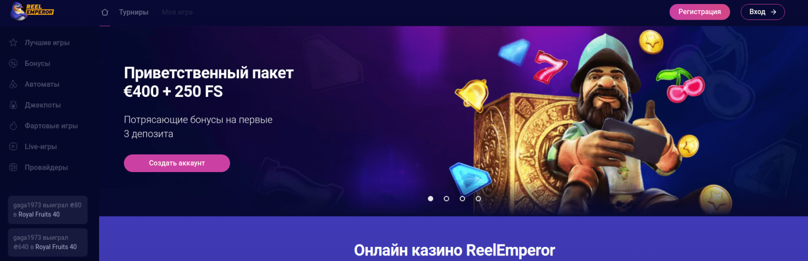 Завершив регистрацию и верификацию аккаунта, пользователю доступны Reel Emperor бонусы. Казино Рил Эмперор предлагает пользователям несколько бонусов к депозитам: